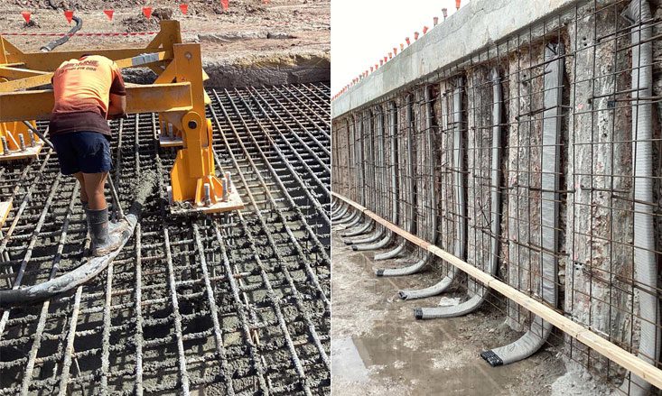 - Commencement of pouring basement slabs on ground L2
